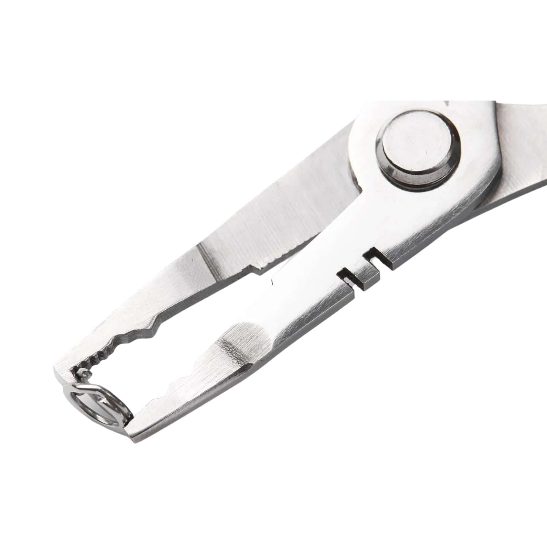 WizTool yhdistää kaksi tärkeää toimintoa samaan välineeseen – tarkat sakset siimojen katkaisuun ja pihdit renkaiden käsittelyyn. Tämä vähentää työkalujen määrää ja helpottaa kalastajan arkea.