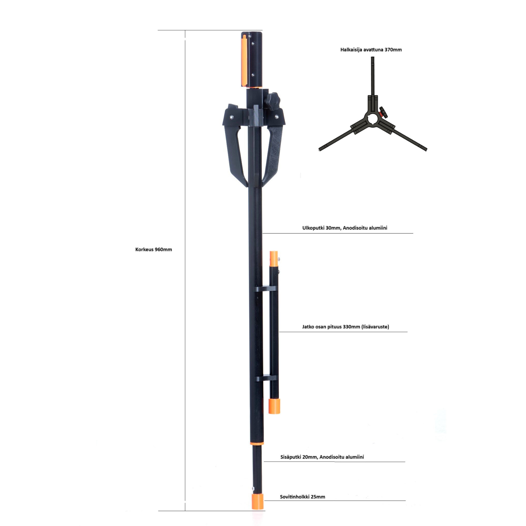 Saatavilla oleva 380 mm jatkopala on erillinen lisävaruste, joka voidaan liittää ja irrottaa nopeasti tarpeen mukaan. Jatkopala tuo lisäpituutta paksuille jäille ilman, että telineen vakaus tai hallittavuus kärsii, ja mahdollistaa liveanturin tehokkaan käytön vaativissa olosuhteissa.