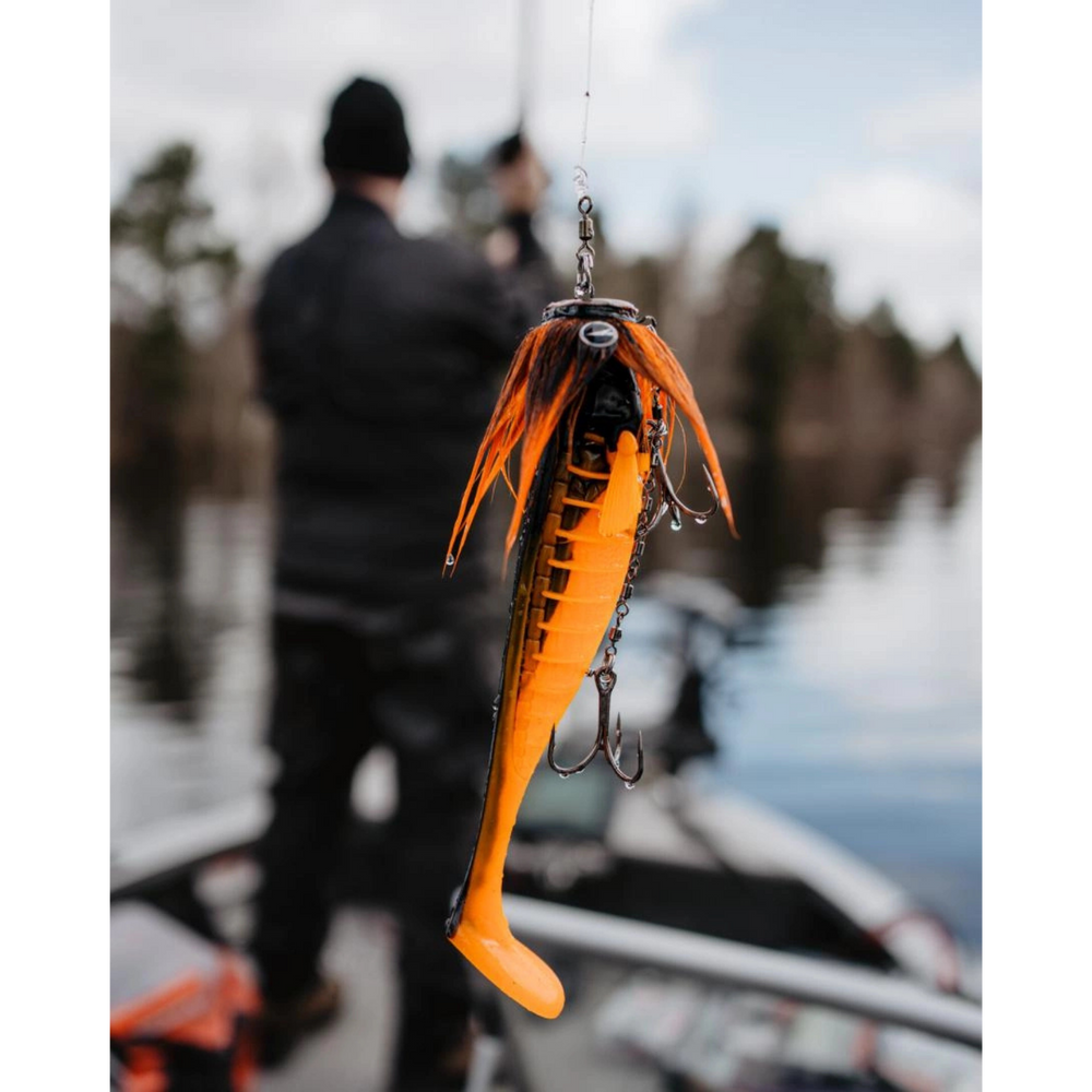 Rapala CrushCity The Kickman 4" on tehokas jigi suurten ahventen ja kuhien pyyntiin. Sen leveä pyrstö tuottaa voimakkaan potkuliikkeen, joka houkuttelee kalaa jo hitaassa kelauksessa. Hajustettu ja suolattu runko parantaa houkuttelevuutta ja varmistaa pidemmän otin. Se toimii erinomaisesti jigipäiden kanssa eri syvyyksissä. Tämä on varma valinta, kun haluat yhdistää houkuttelevan liikkeen ja kestävän rakenteen.