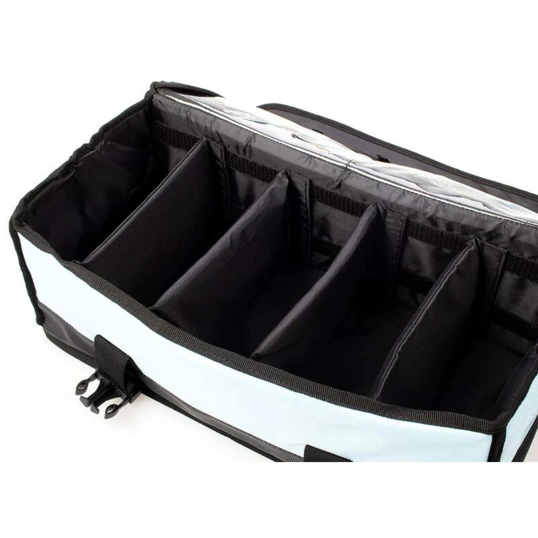 • Sisätila: säädettävät väliseinät, läpinäkyvät sisätaskut pienvarusteille